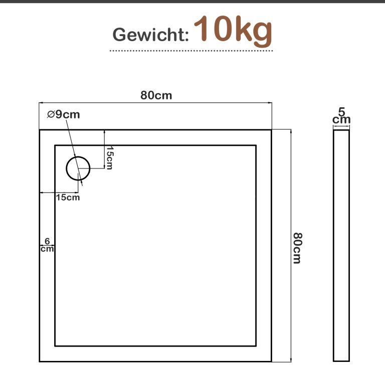Aquamarin suport de duș pătrat, 80 x 80 cm