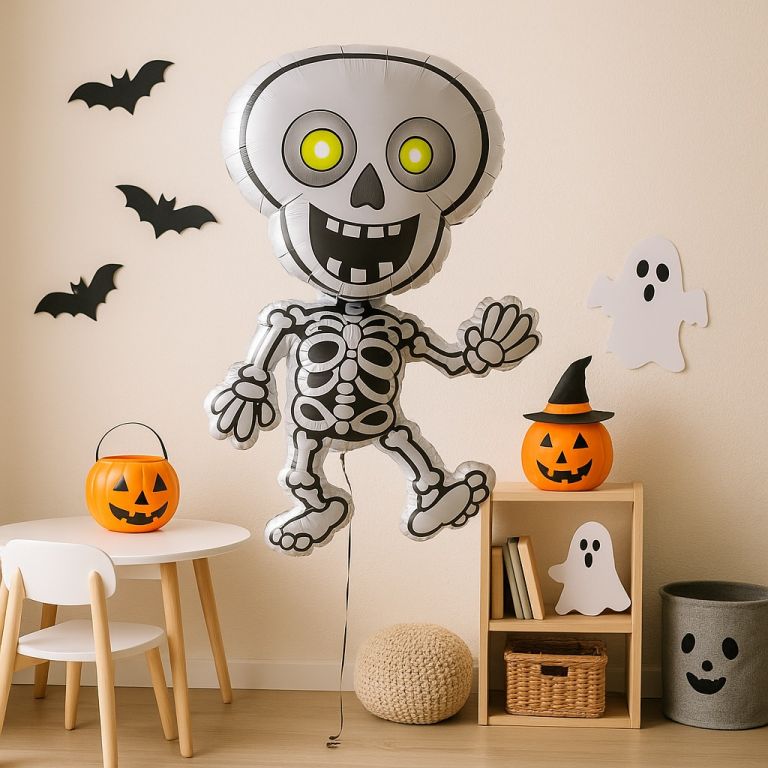 Balonul de schelet cu heliu este un decor de succes de Halloween. Nu contează dacă este înfricoșător, amuzant sau ciudat - o pereche de baloane asortate cu deviza va evoca o atmosferă potrivită.