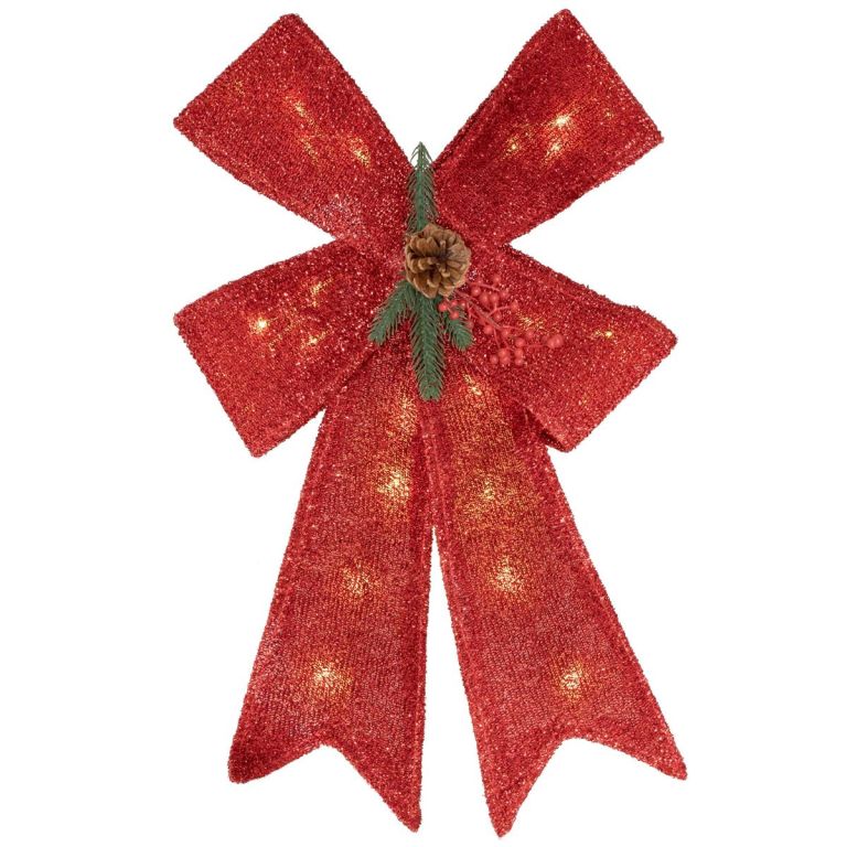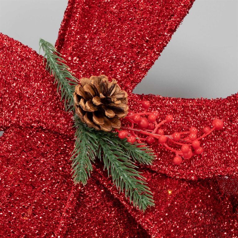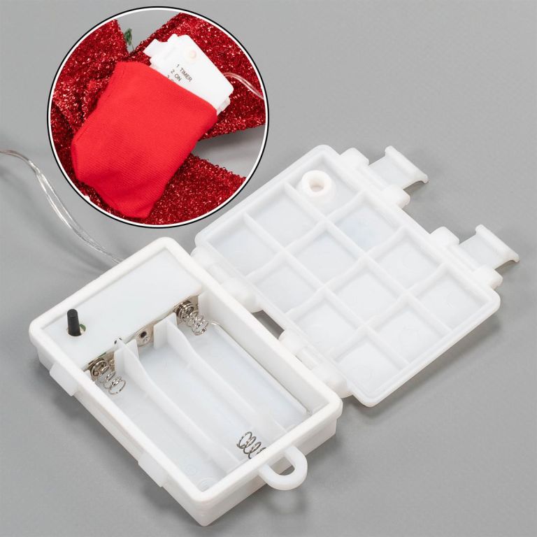 Decorațiune de Crăciun, fundiță roșie, 20 LED-uri, alb cald