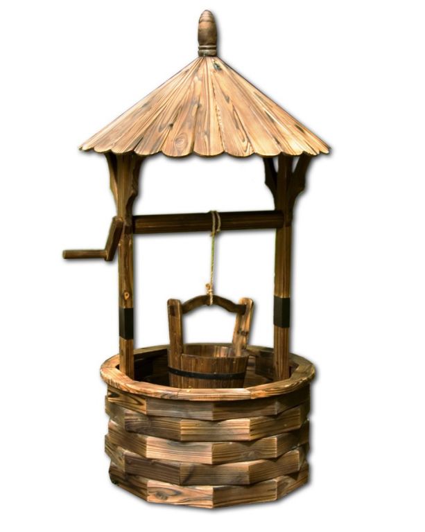 Această fântână frumoasă din lemn va deveni punctul culminant al grădinii dvs. Această fântână este realizată în întregime din lemn. Finisajul fântânii este frumos la vedere și, în același timp,rezistent la intemperii.