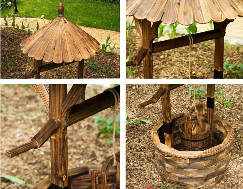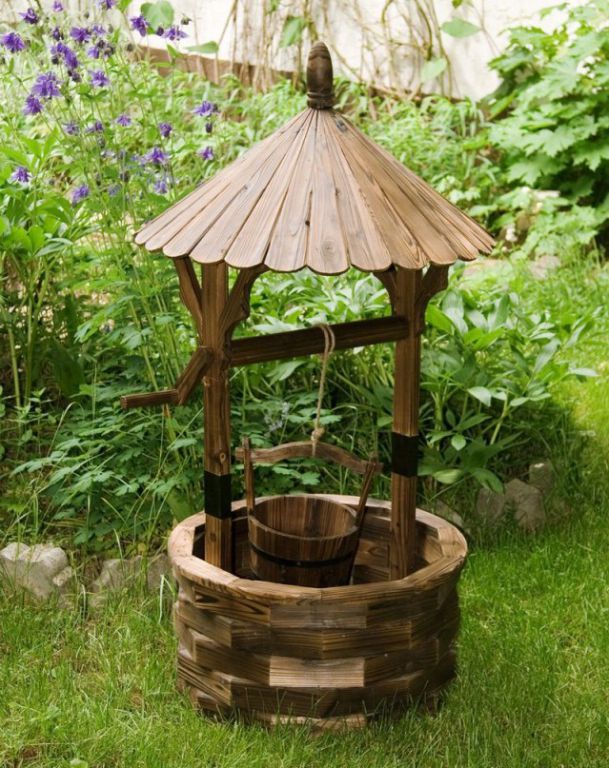 Decorațiuni de grădină - fântână din lemn