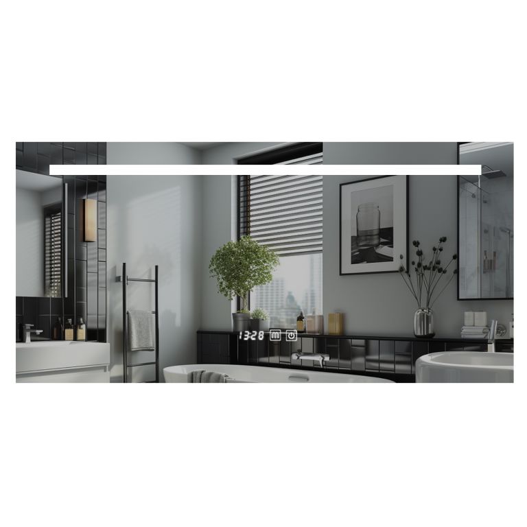 Oglinda oferă un număr mare de funcții pe ecranul tactil. Veți găsi funcția de atenuare de dezaburire, un ceas și un afișaj al temperaturii.