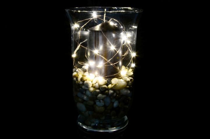 Lanțul delicat de lumini cu 10 LED-uri poate fi folosit pentru a decora ferestrele sau o masă aranjată în mod festiv.