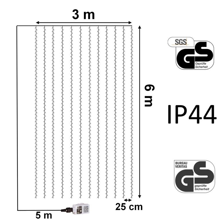 Perdea luminoasă de Crăciun - 3x6 m, 600 LED, multicolor
