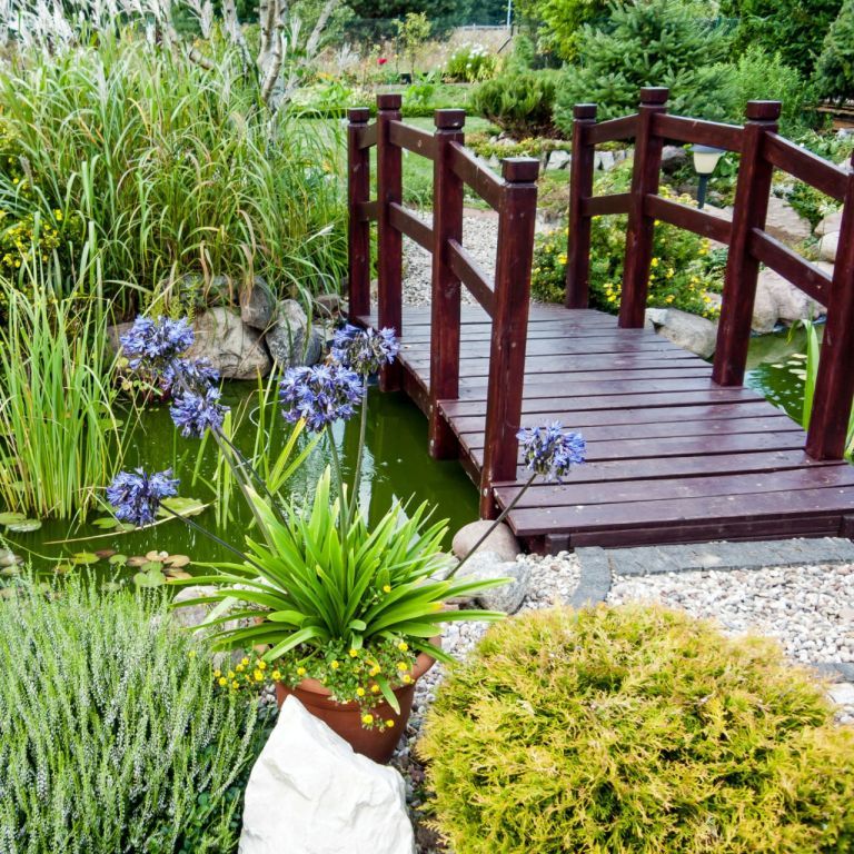 Acest pod frumos din lemn masiv este ideal pentru a acoperi un pat de flori sau un pârâu, dar, în orice caz, este un ornament în orice grădină.