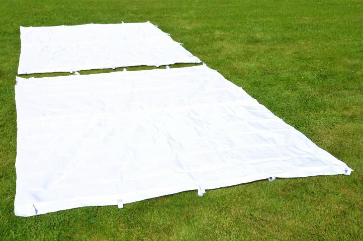 Cortul are patru pereți laterali, deci poate fi complet închis.