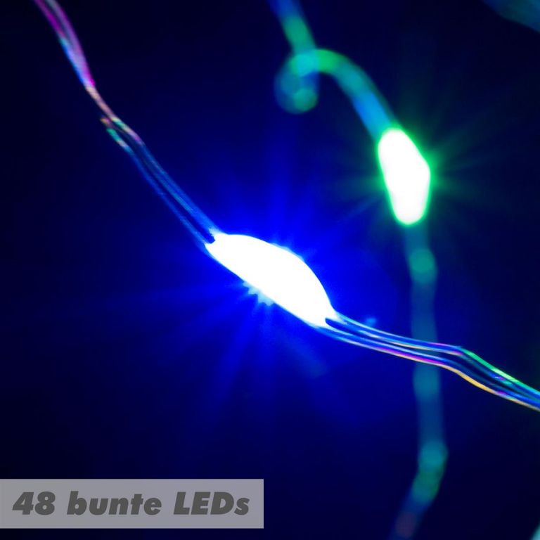Nu numai de Crăciun, cele 48 de LED-uri colorate din acest lanț luminos creează o atmosferă magică în interiorul dvs., fie că este vorba de seră sau de camera de zi decorată în mod festiv. De asemenea, la petreceri sau în vitrinele magazinelor, acest lanț de ploaie ușor este o atracție absolută pentru ochi. Desigur, este, de asemenea, un decor minunat pentru orice ocazie. Consumul de energie este foarte redus datorită tehnologiei eficiente LED. Cu ajutorul temporizatorului, puteți decide singur când doriți să porniți iluminatul. Funcție de temporizare sau de lumină continuă, selectabilă în mod liber.