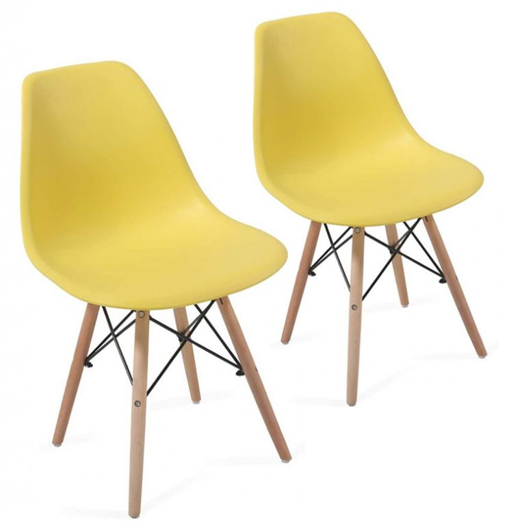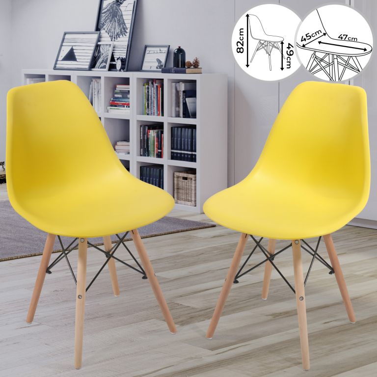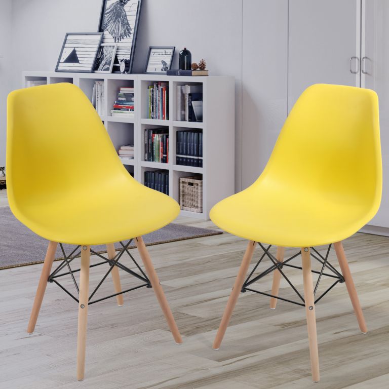 Set de scaune de luat masă din plastic, 2 bucăți, galben