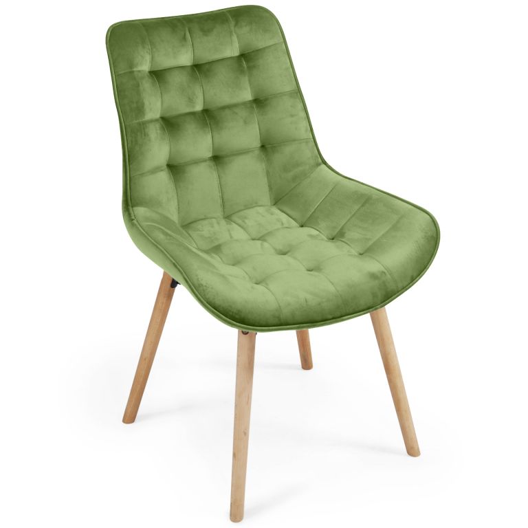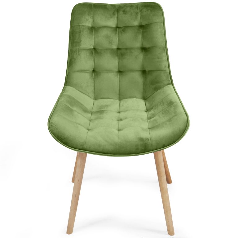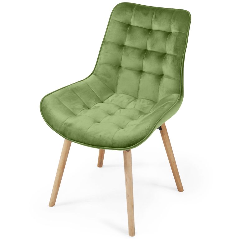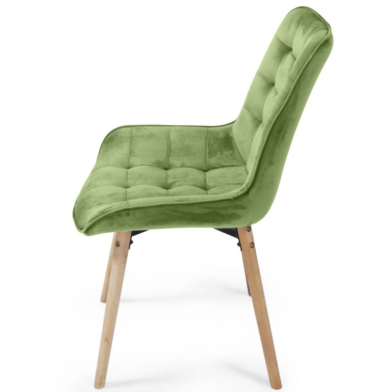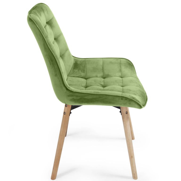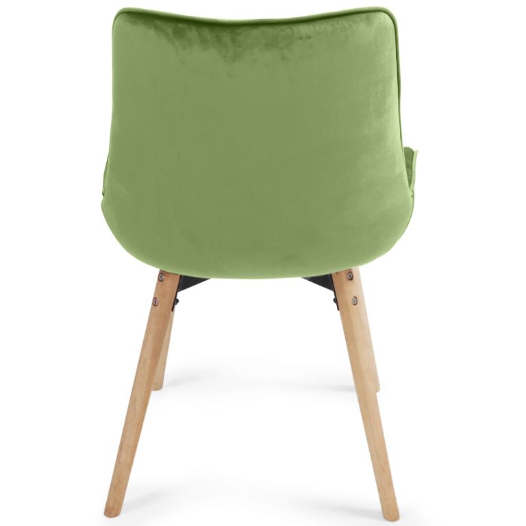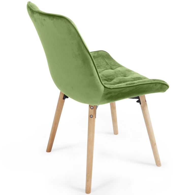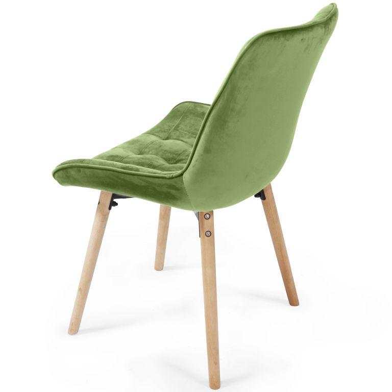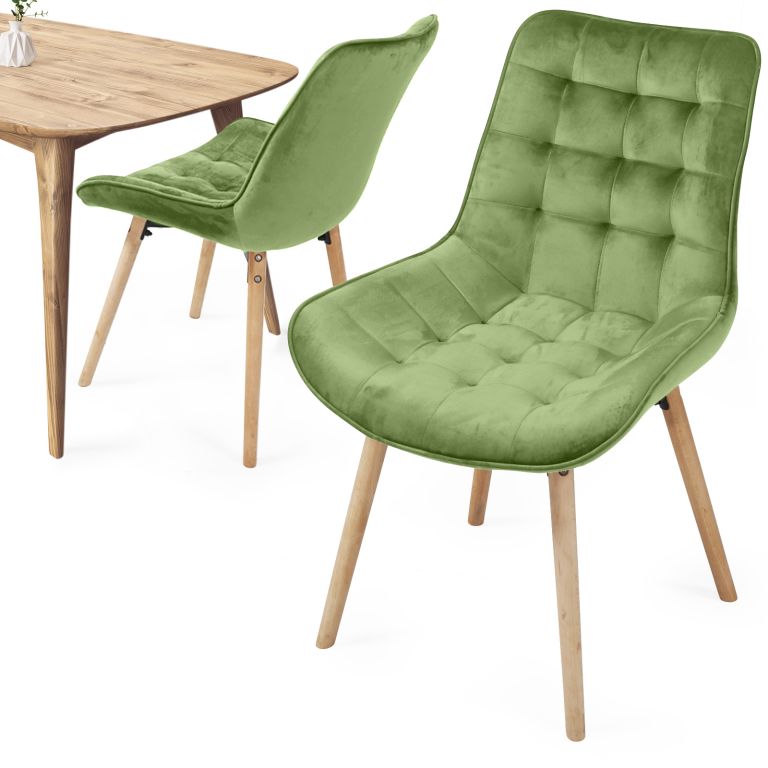 Scaunele sunt din catifea. Tapițeria vă va asigura confortul, iar cusăturile oferă scaunelor designul potrivit. Picioarele din lemn de fag asigură o stabilitate excelentă. Datorită designului, scaunul este potrivit nu numai pentru bucătărie, ci și pentru living.