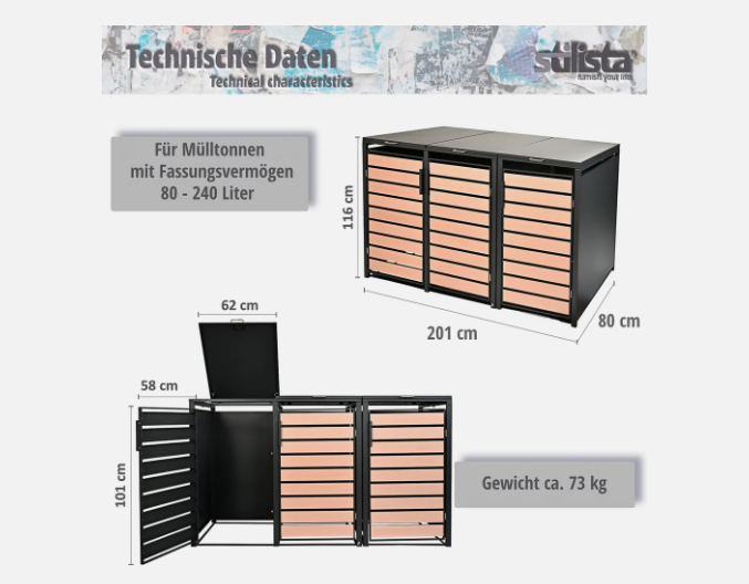 Acesta oferă spațiu pentru trei coșuri cu o capacitate de până la 240 de litri. Capacul coșului are un arc cu gaz pentru o deschidere și închidere ușo