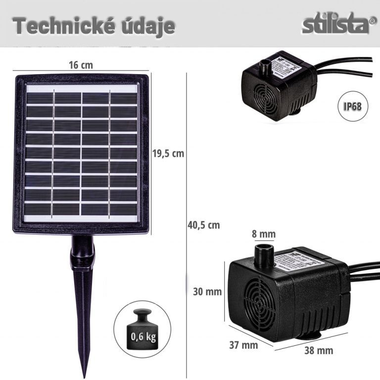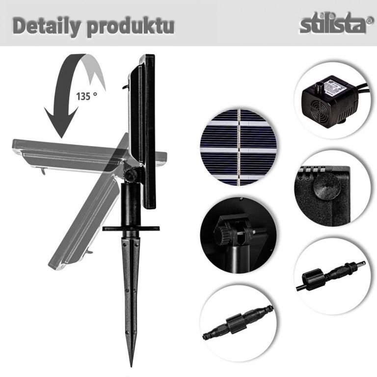 STILISTA Pompă solară 16 x 40,5 cm, 2,8 W, neagră