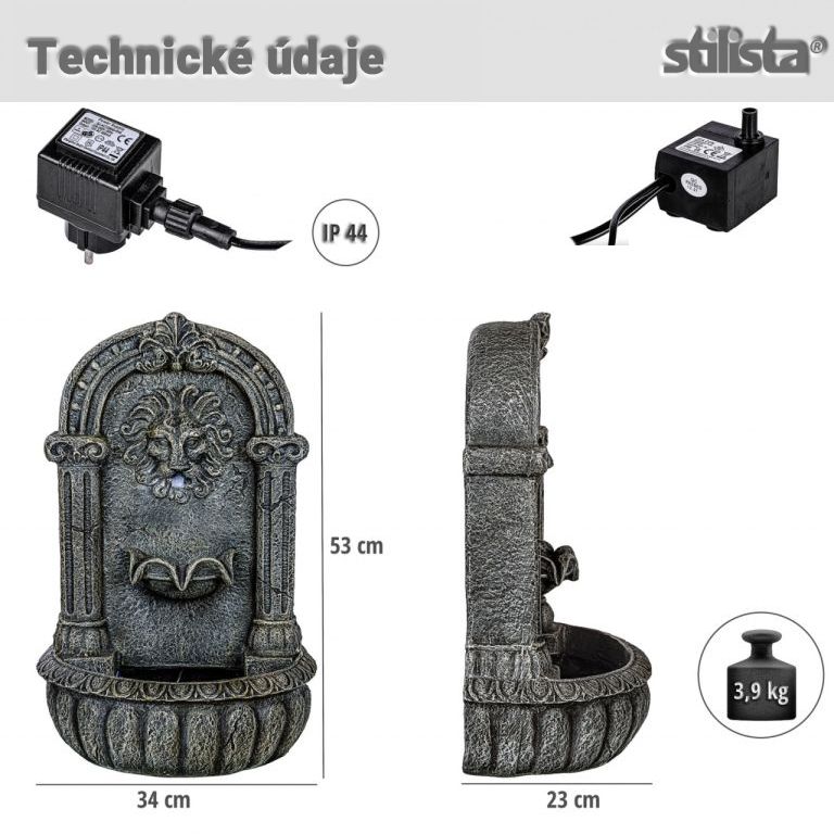 STILISTA Zahradní fontána Lví hlava, 34 x 23 x 53 cm