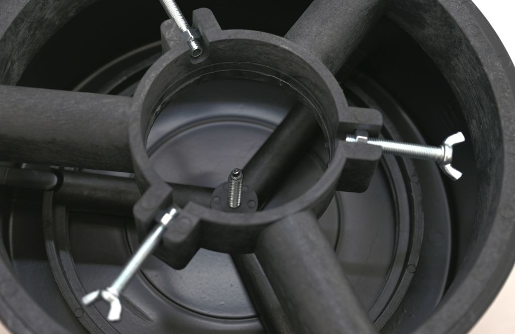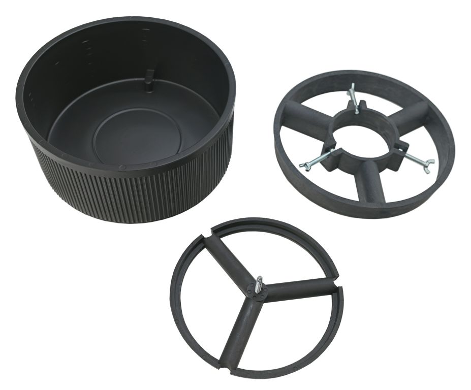 Suport robust pentru amplasarea pomului de Crăciun cu înălțimea de până la 1,5 m. Trunchiul pomului (cu diametrul de până la 10 cm) poate fi fixat în partea inferioară cu un șurub. Bradul poate fi fixat, stabilitatea crescută și înclinarea poate fi reglată cu ajutorul mecanismului de mânuire cu trei șuruburi din partea superioară a suportului. corpul suportului este fabricat din material rezistent, care poate fi umplut cu apă, nisip sau pământ pentru o stabilitate mai mare. după îndepărtarea mecanismului de fixare, suportul poate fi folosit și ca ghiveci de flori.